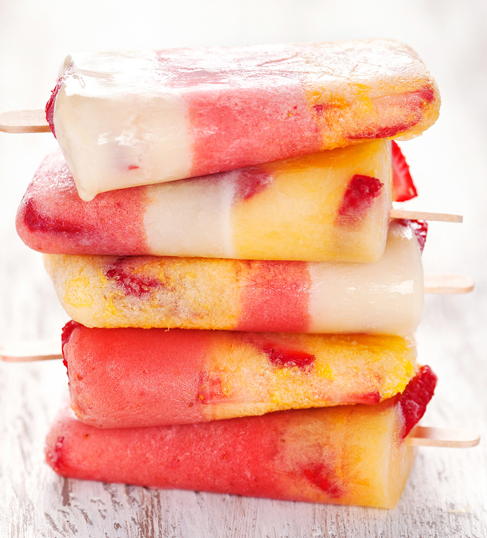 • Combine all ingredients into a blender, blending until smooth. Pour into popsicle mold. Freeze 4-6 hours. *Option of adding fresh slices of strawberries to mold.